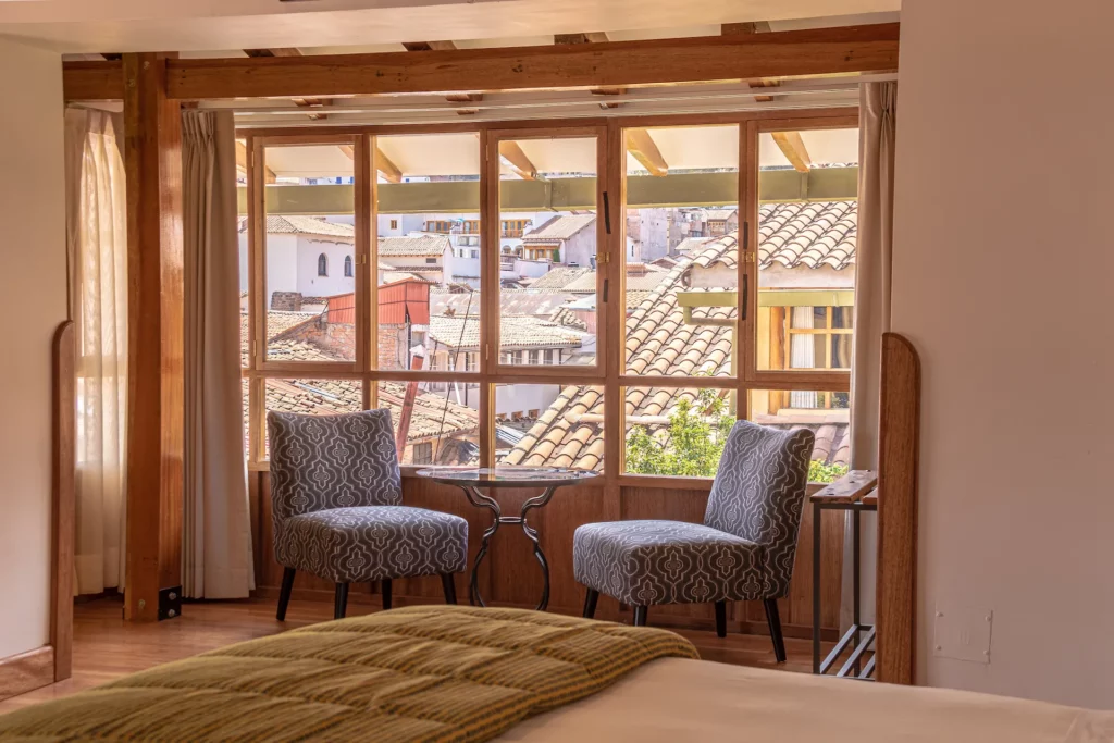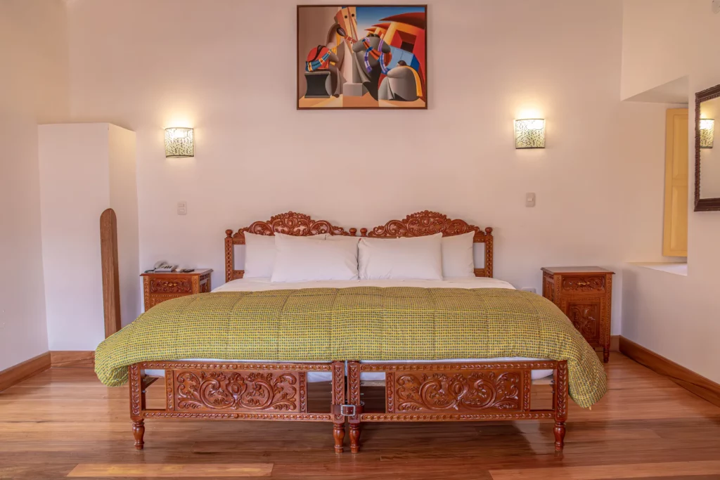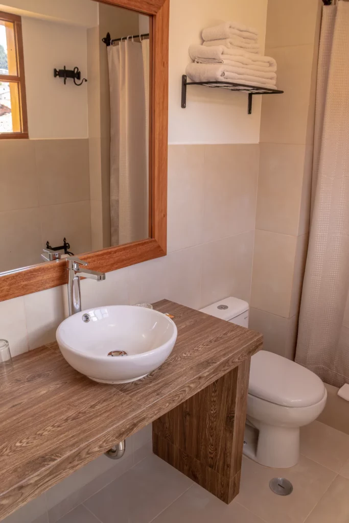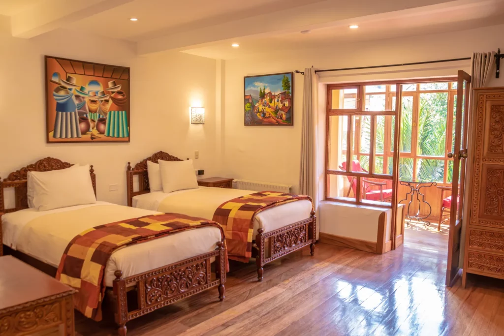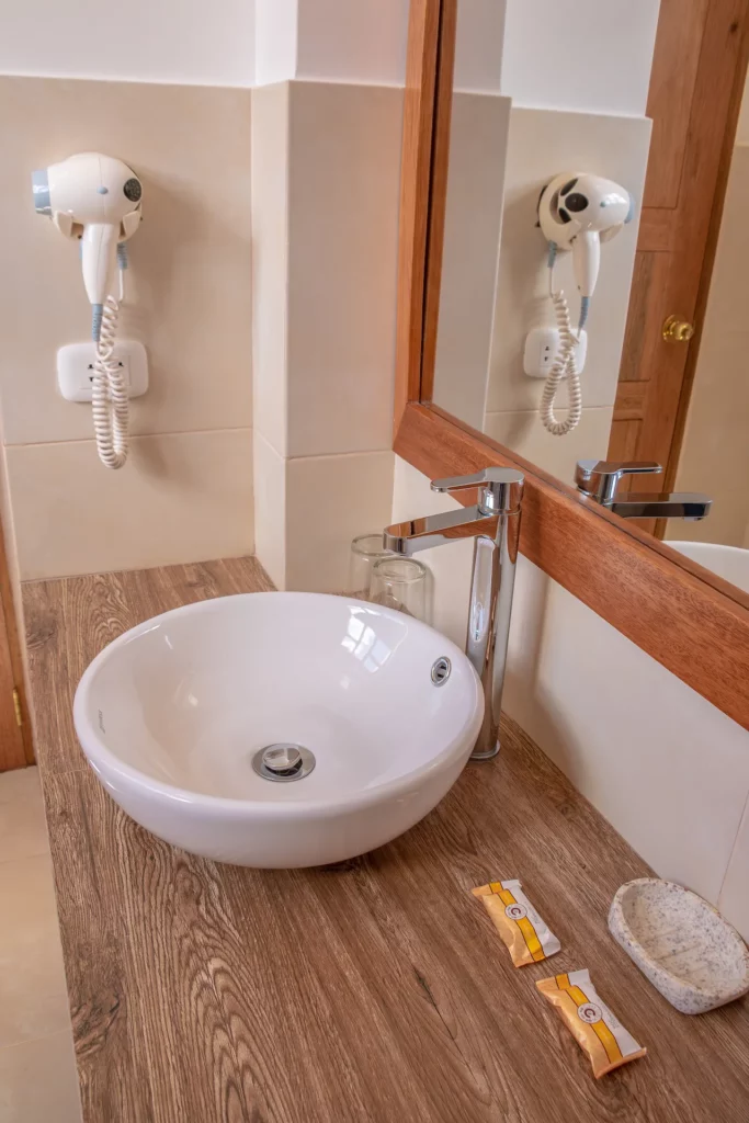 The superior rooms have two twin beds (97 cm wide by 197 cm long), which can be joined for double use in super king mode (2 meters wide). They are equipped with white cotton and polyester bedding, feather bedspreads, cream-colored bedspreads, foam pillows and synthetic fiber blankets. They have luggage racks, closet, living room with armchairs and coffee table, nightstands and lamps. The central heating system is available from 7 pm to 7 am. The private bathroom has a shower, sink and toilet. The bathroom is prepared with a floor towel, plus a body towel and a hand towel for each guest to be accommodated. It includes selected amenities. It has a wall-mounted hair dryer, safety box, electric kettle and infusions.